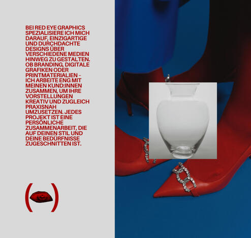 Bei red eye graphics spezialisiere ich mich darauf, einzigartige und durchdachte Designs über verschiedene Medien hinweg zu gestalten. Ob Branding, digitale Grafiken oder Printmaterialien – ich arbeite eng mit meinen Kund:innen zusammen, um ihre Vorstellungen kreativ und zugleich praxisnah umzusetzen. Jedes Projekt ist eine persönliche Zusammenarbeit, die auf deinen Stil und deine Bedürfnisse zugeschnitten ist.red eye graphics – Deine Ideen. Mein Design. Maximale Wirkung.